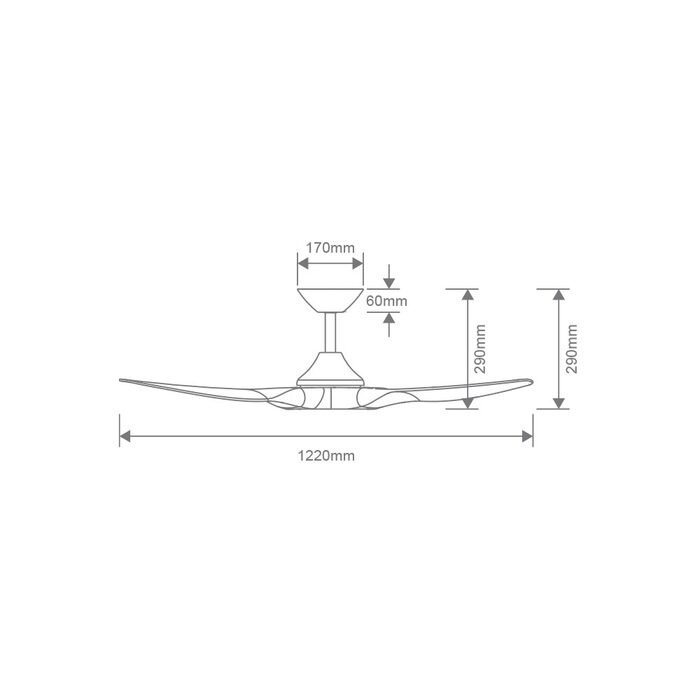 Available in a 3 Blade 48” 1220mm blade length or 3 Blade 60” 1520mm blade length with the choice of an 18W LED CCT Switchable light Kit as an optional accessory if a light option is required.