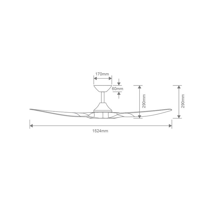 Available in a 3 Blade 48” 1220mm blade length or 3 Blade 60” 1520mm blade length with the choice of an 18W LED CCT Switchable light Kit as an optional accessory if a light option is required.