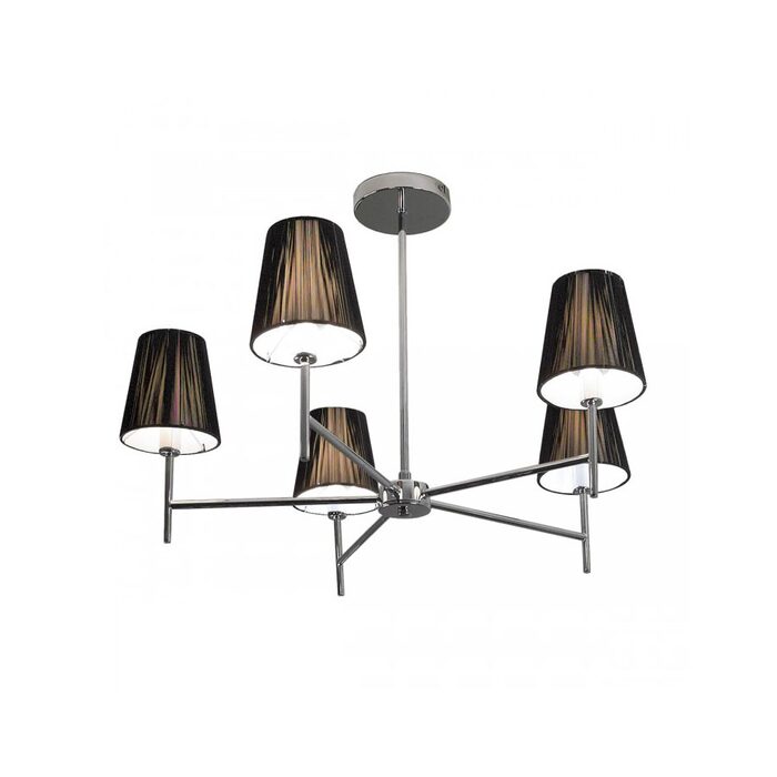 Decorative ceiling 5 light fixture. A Chrome body with Black string shades. Ideal for low ceilings.