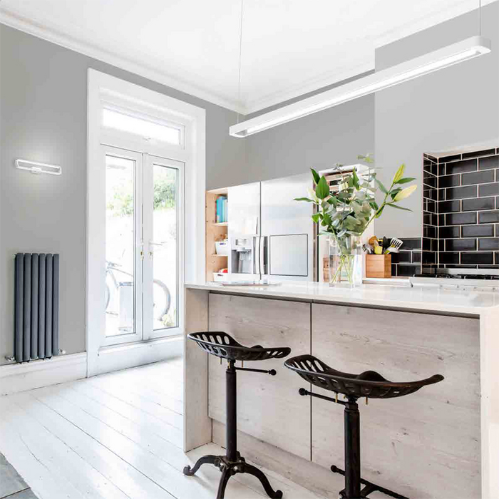 A collection of wall, ceiling, hanging and oor lamps with a matt white painted aluminium xture, a satin nish polycarbonate diffuser and a LED light source.