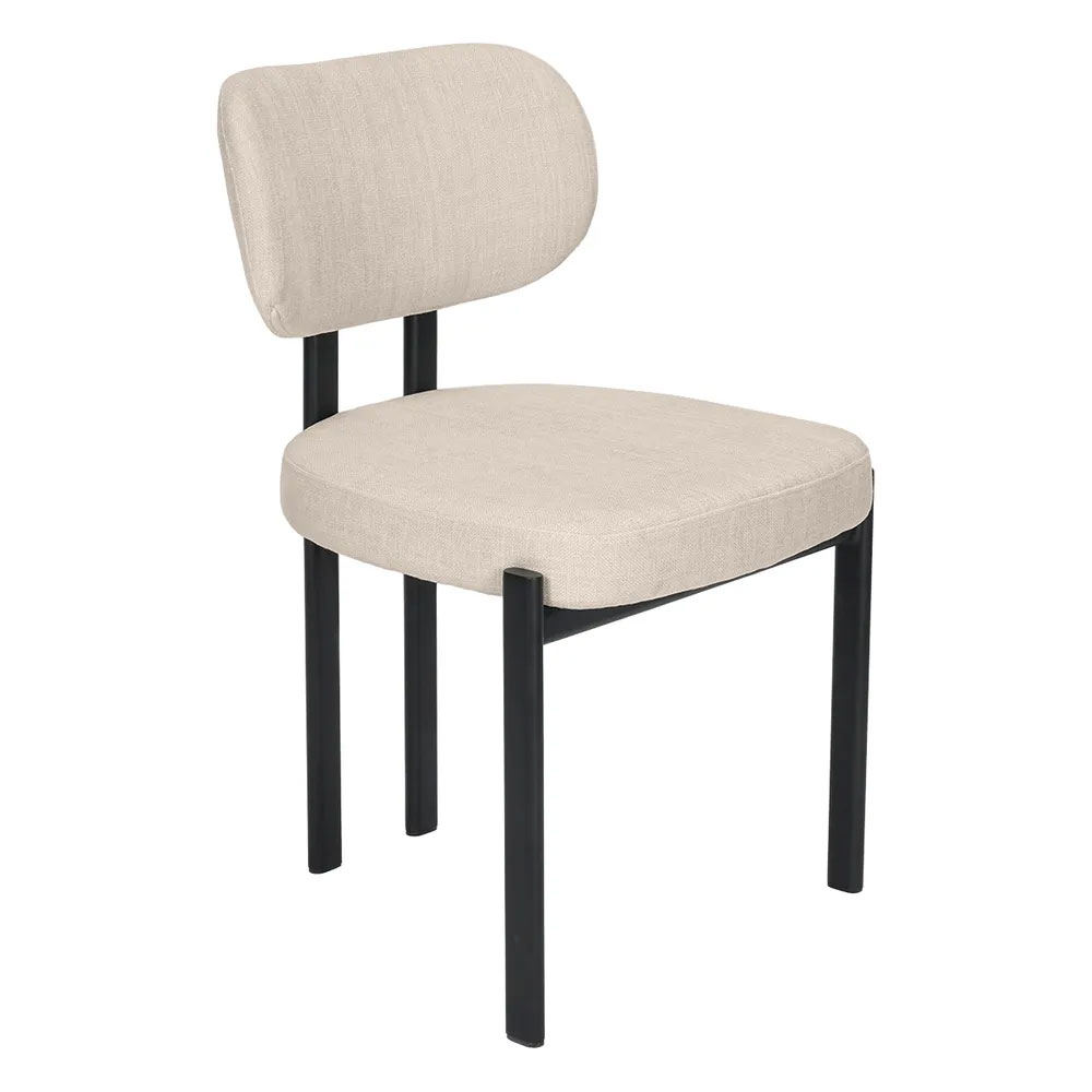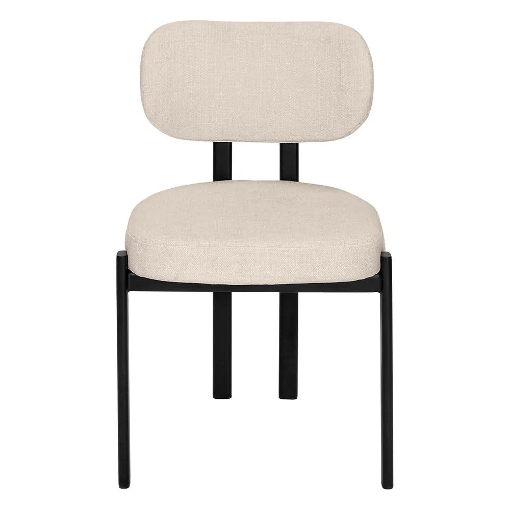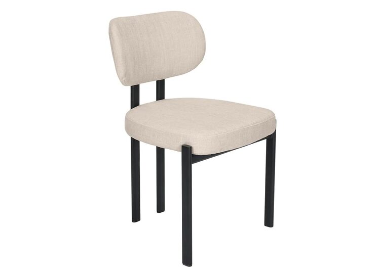 Enhance your space with this modern upholstered dining chair, crafted with a sleek black metal frame and softly textured natural chenille.