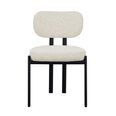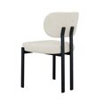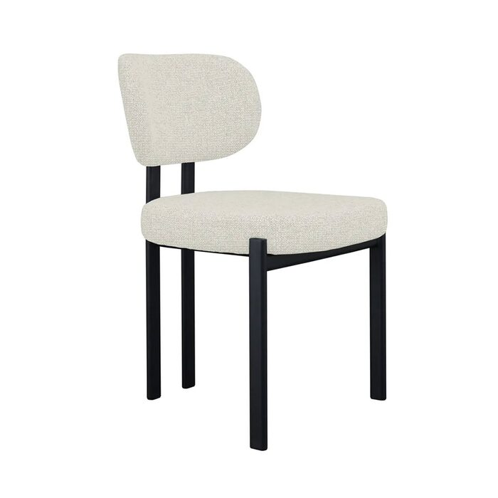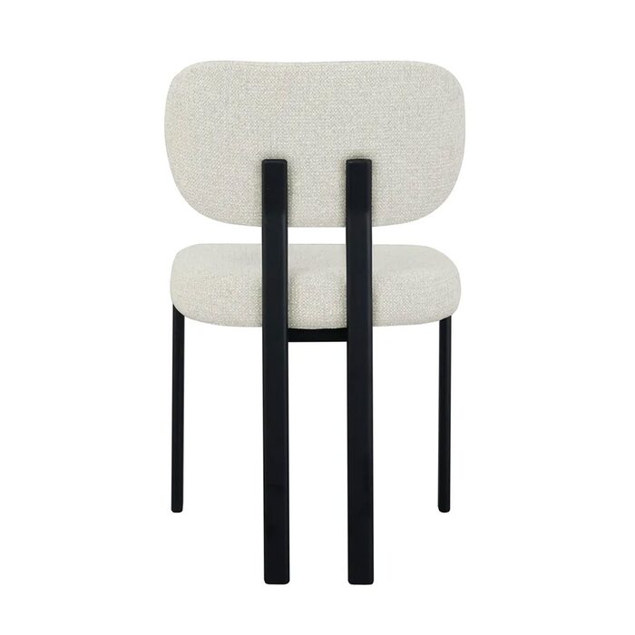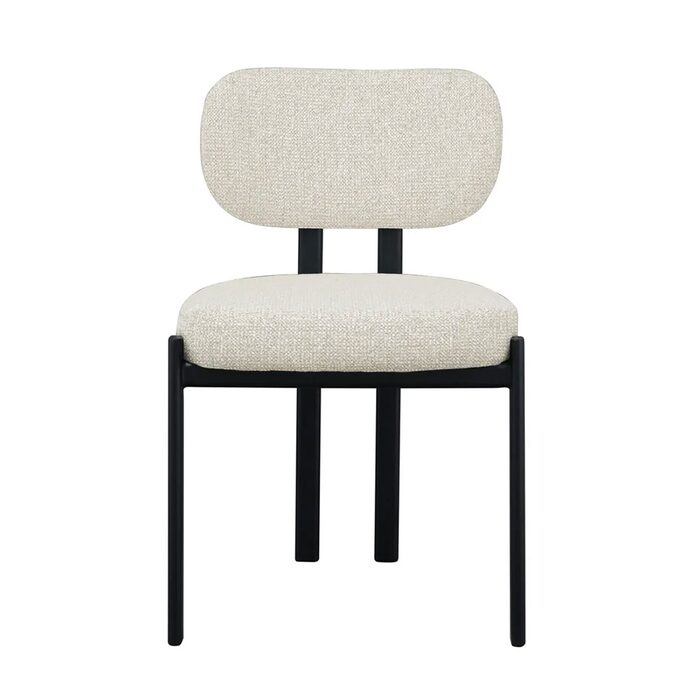 Enhance your space with this modern upholstered dining chair, featuring a sleek black metal frame and textured light grey fabric.
