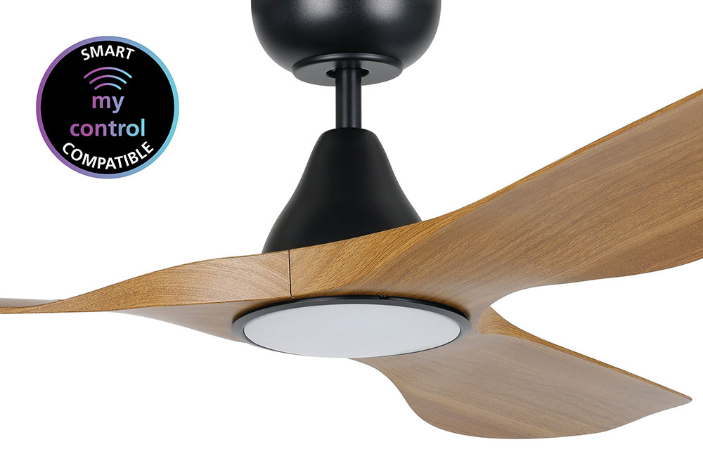 Available in 40", 48", 52", 60" & 72" sizes, with or without LED light, and in Black, White, Oak or Burmese Teak finishes, the Surf fan is the perfect all-rounder