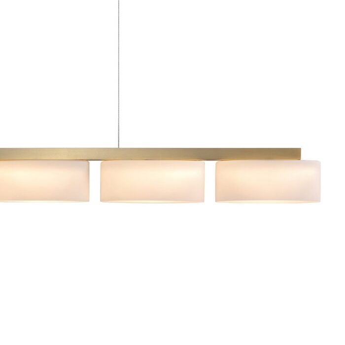 The Swiss 1400 pendant light draws inspiration from the gentle white sails and showcases handcrafted opal glass shades that diffuse a soft and warm light.