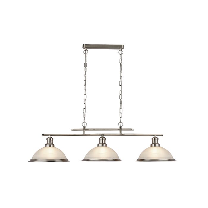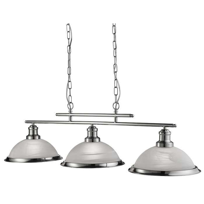 Our Sylvia Decorative 3 Light Pendant. Classic styling with alabaster glass shades with Satin Chrome metalwork.