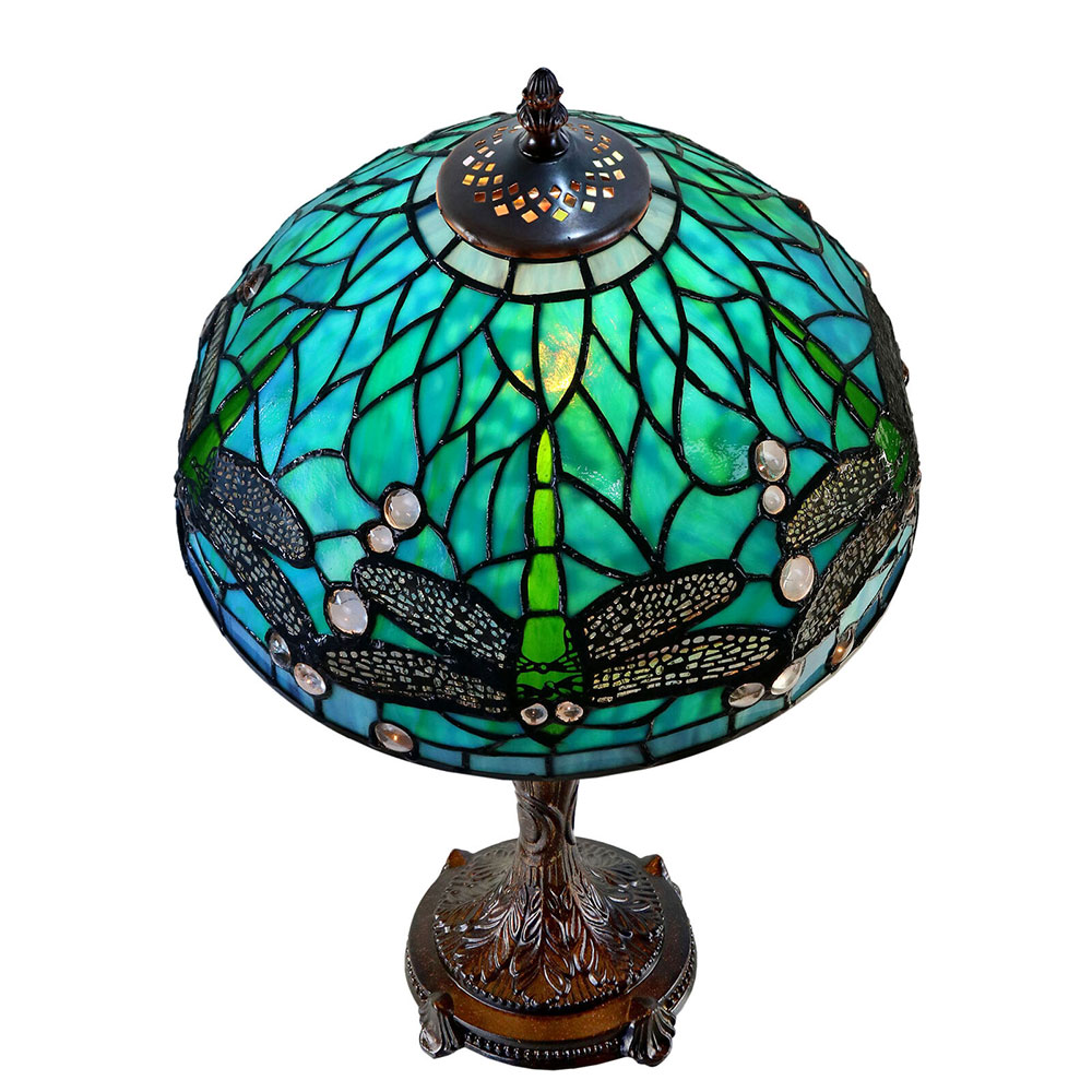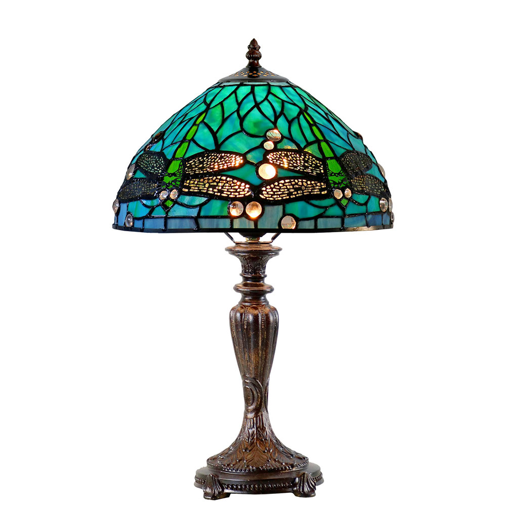 This stunning 12-inch lamp features intricate dragonfly detailing, adding a touch of whimsy to your decor.