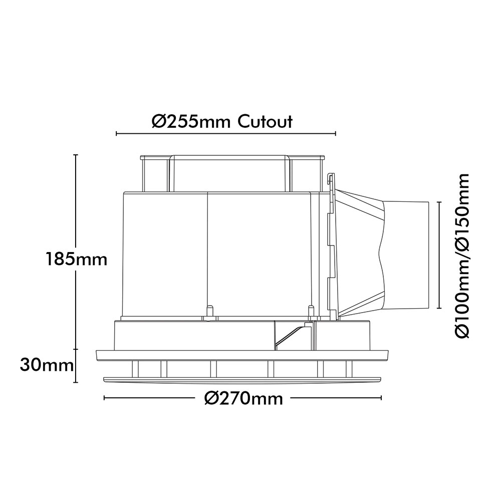- 100mm & 150mm duct adaptor with back draft shutter included