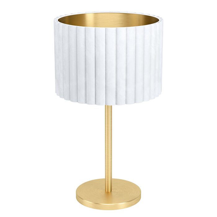 The stunning outer white velvet shade paired with brushed brass metalware on this range will add a luxe appeal to any home.