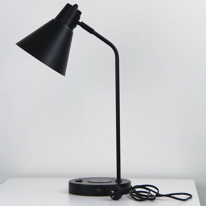 TARGA is an ideal task lamp for desk or bedside. A USB socket for charging devices is positioned on the side of the base. Or charge wirelessly by placing your phone on top of the base.