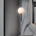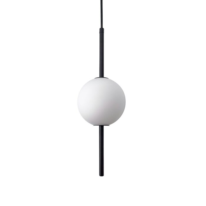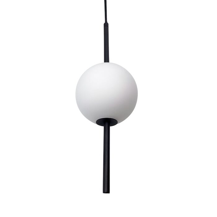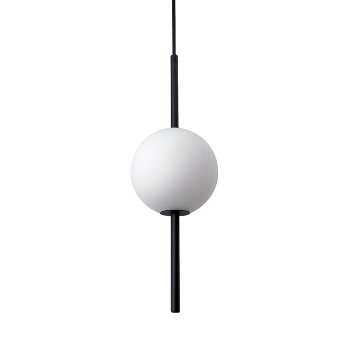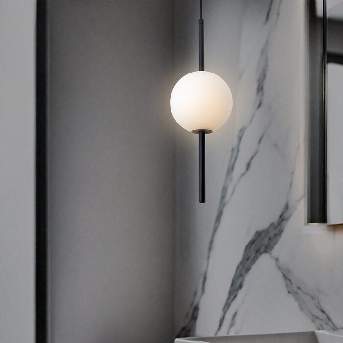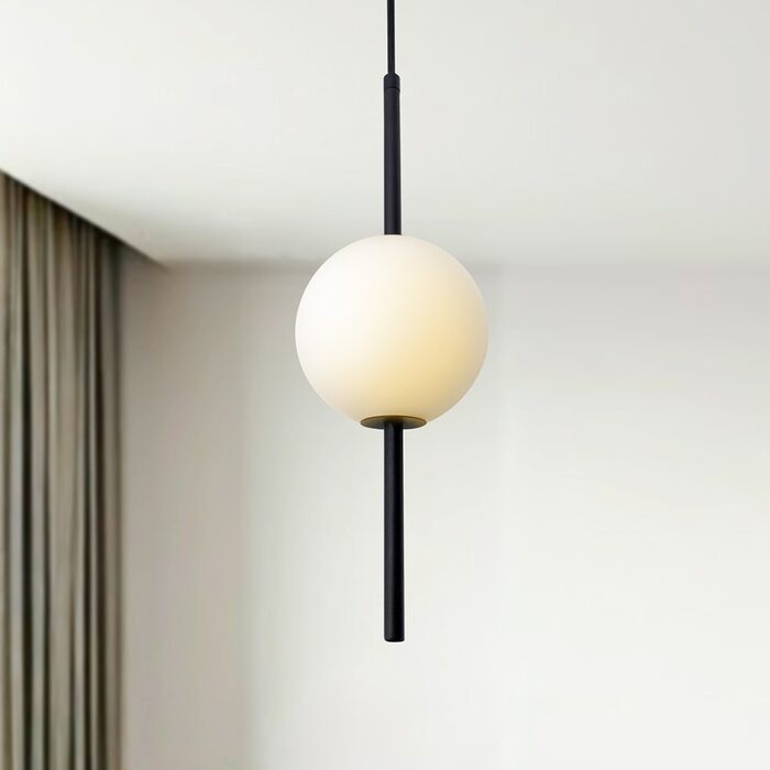 The opal matte finish of the shades prevents glare and the striking black embellishments add drama and warmth, making it a statement piece in any space.