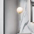 The opal matte finish of the shades prevents glare and the striking black embellishments add drama and warmth, making it a statement piece in any space.