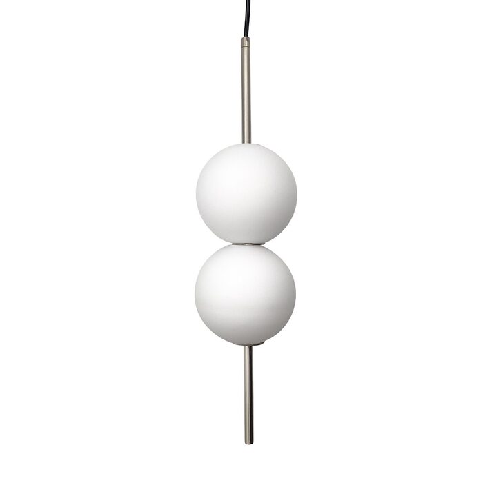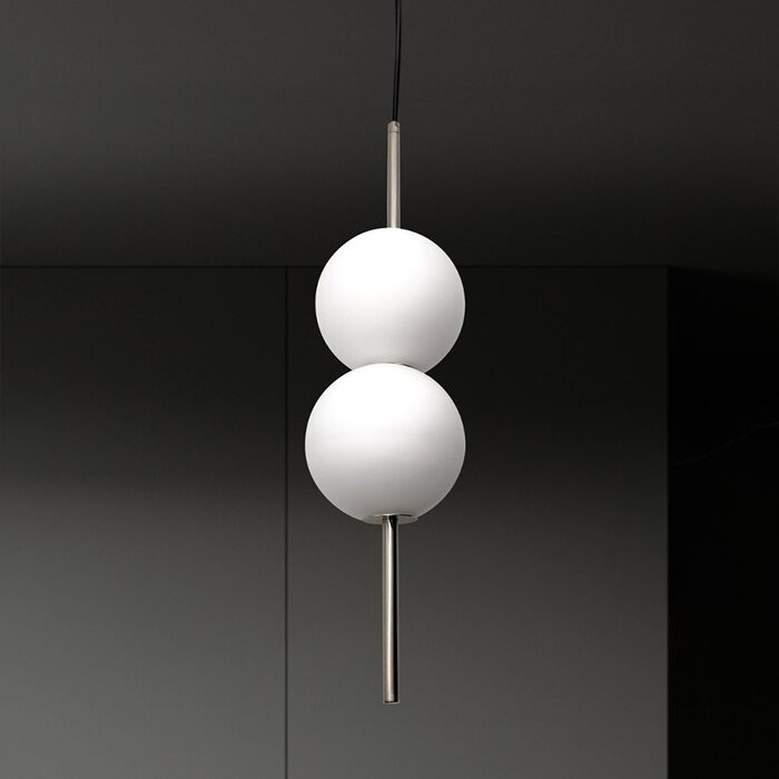 Introducing the Tarnie 2lt LED pendant in Nickel with Opal glass shades.
