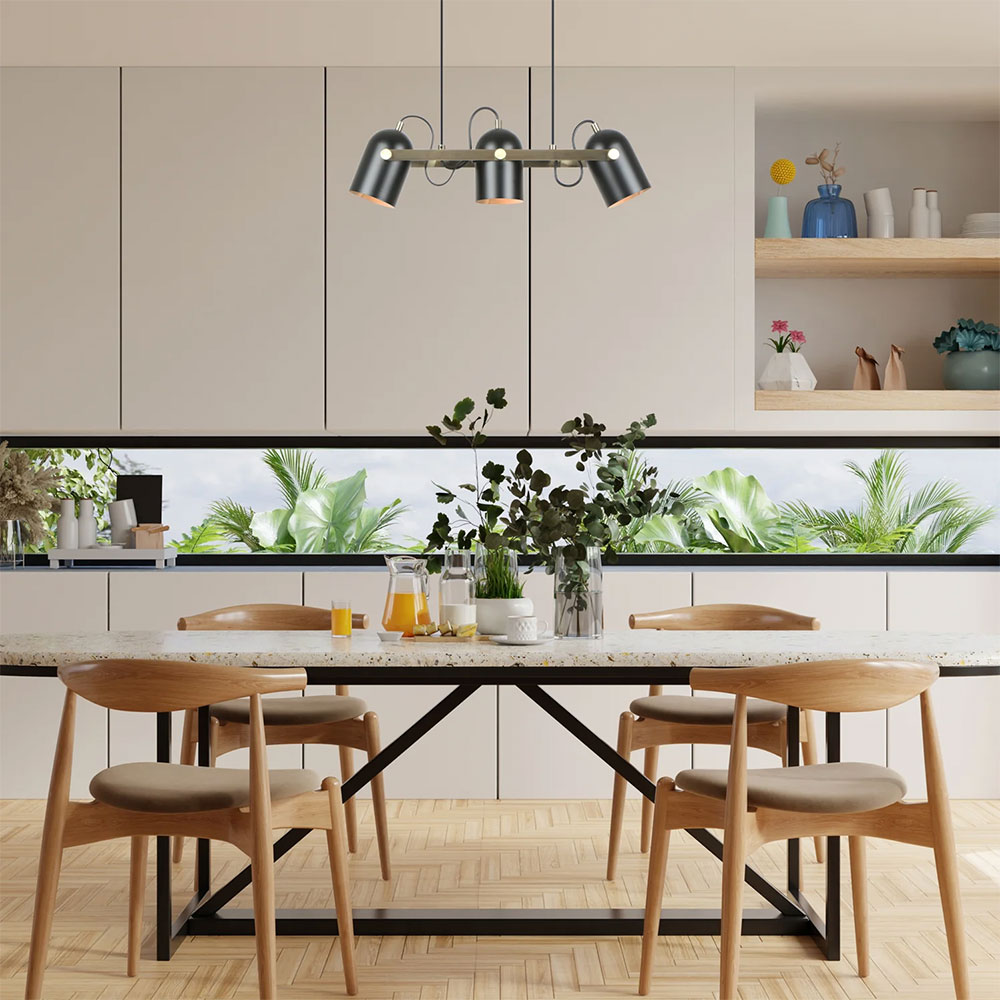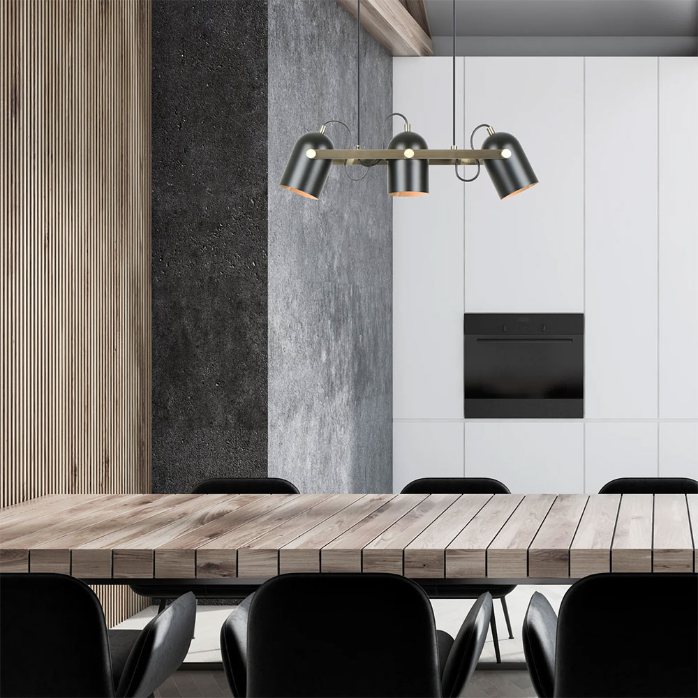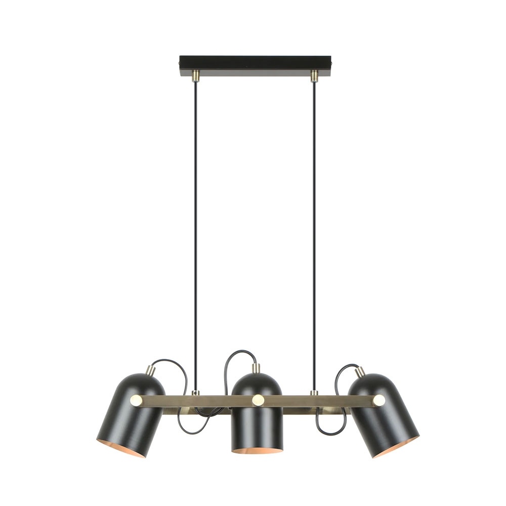 Illuminate your space with the Tazza pendant light in Matte Black & Aged Brass Hardware.