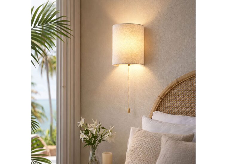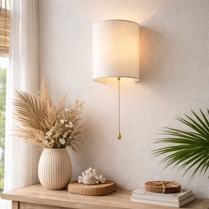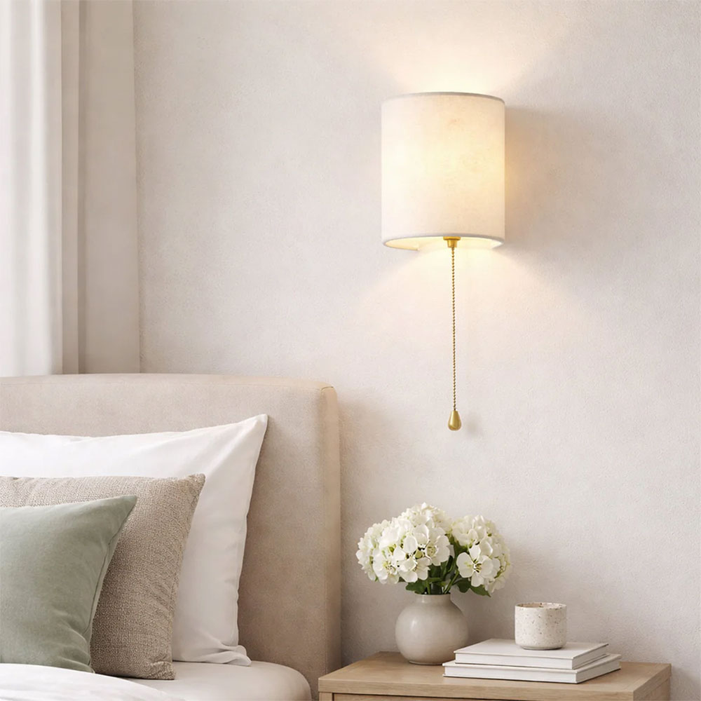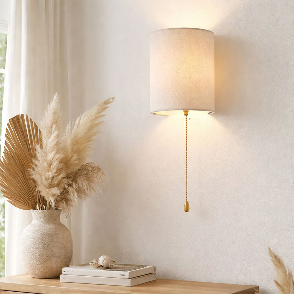 Defined by its luxurious velvet half-cylinder shade in crisp white, the Teevan Pull Cord Wall Light pairs a minimalist silhouette with classic modern appeal.