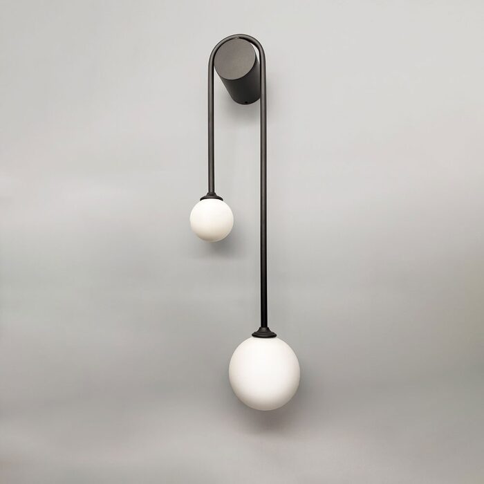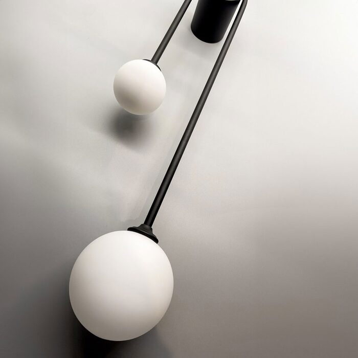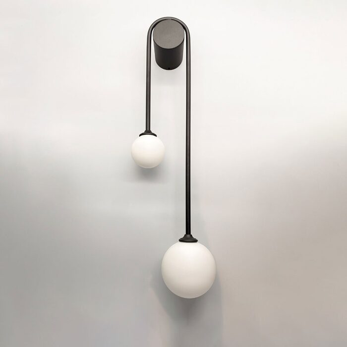 Transform your space with the striking Tetris 2LT Black Wall light. This contemporary fixture features a sleek black metal frame and two opal glass shades.