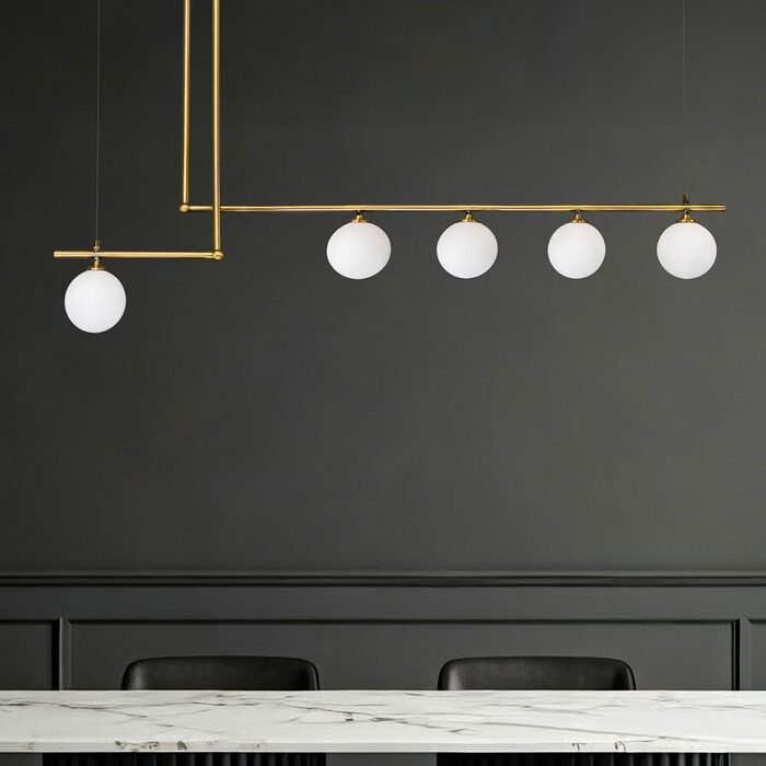 The opal glass diffuses light softly, providing a warm and inviting glow to any room. Designed to accommodate G9 bulbs (not included), this pendant is also dimmable, allowing you to effortlessly adjust the brightness to set the perfect mood, whether it's a cozy dinner or a lively gathering.