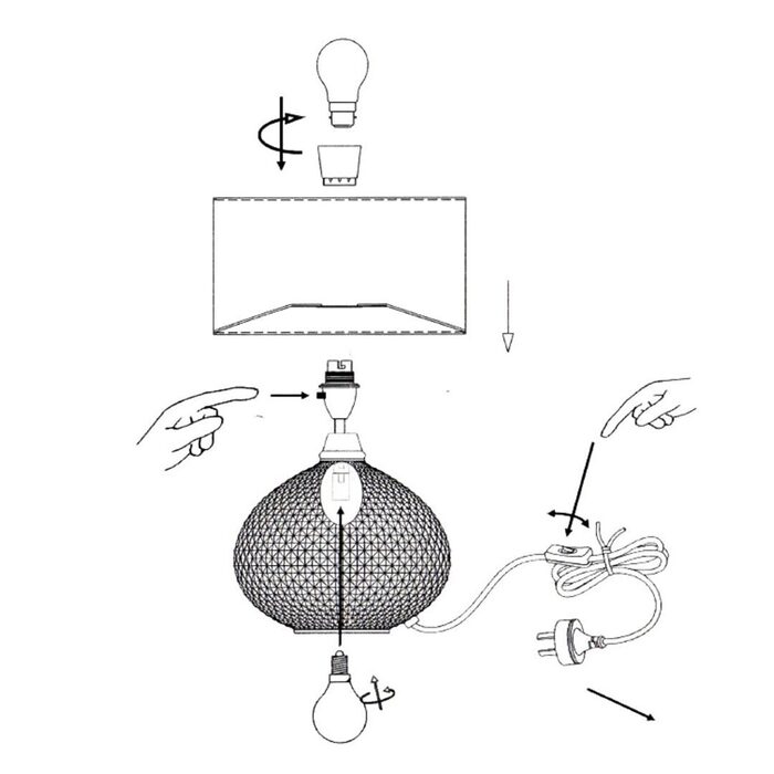 Lamps switched individually, shade switch on stem and glass base on power supply cord.