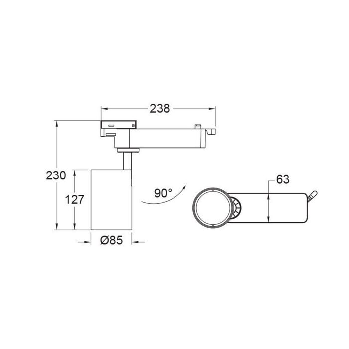 - Extruded aluminium profile, horizontal 350 degree rotatable , 90 degree vertical