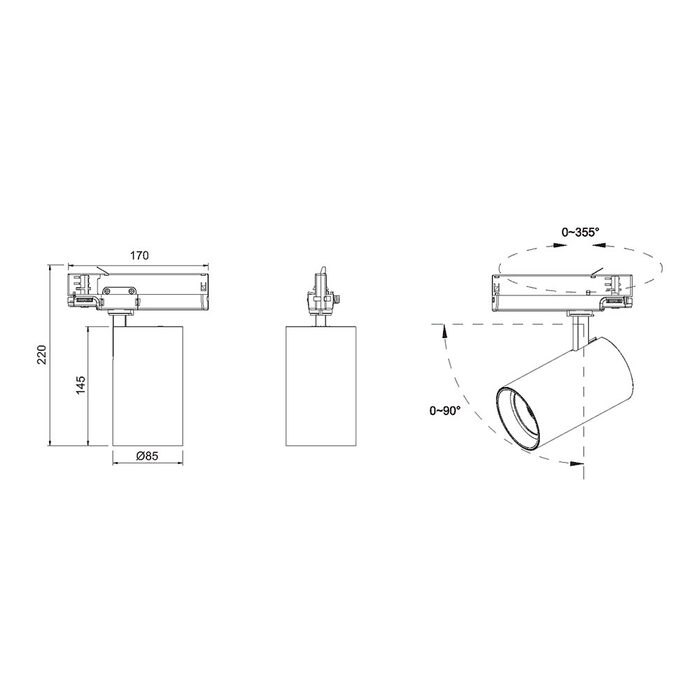 Three circuit, 40W track spot, with integral dimmable driver and selectable colour temperature