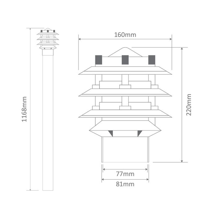 Tiered conical helmet bollard head and 76mm post. Featuring die-cast aluminium body and clear glass diffuser. Available in Beige, Black, Silver, Green and White powder-coated finishes.