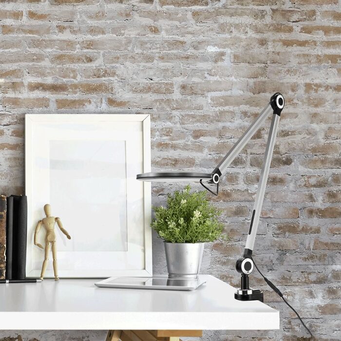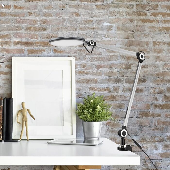 Thrive Clamp Lamp, in stunning brushed black has a huge 1 meter span, Clamp Base, Touch Dimming and CCT Colour changes for Cool, Warm and Daytime to suit your task or to relax.