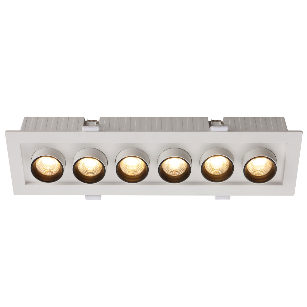Each adjustable downlight can be pulled out and features 360° rotation, allowing for precise directional lighting.