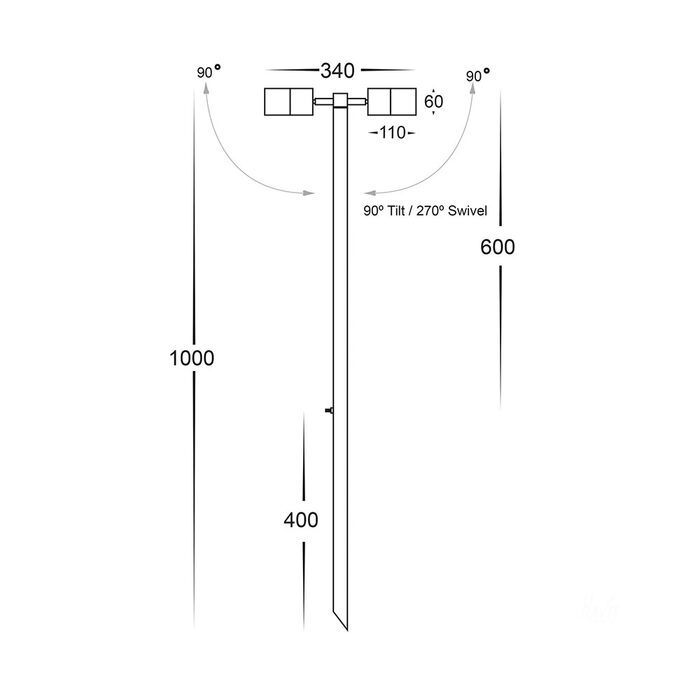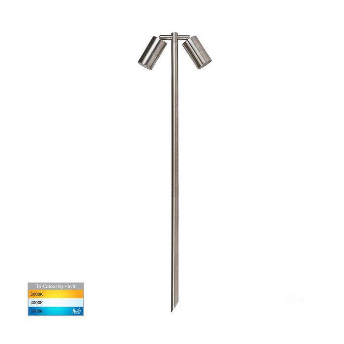 Tivah 2 x 5W CCT 12V DC MR16 LED Double Adjustable Bollard Spike Light 316 Stainless Steel - HV1405T-SS316