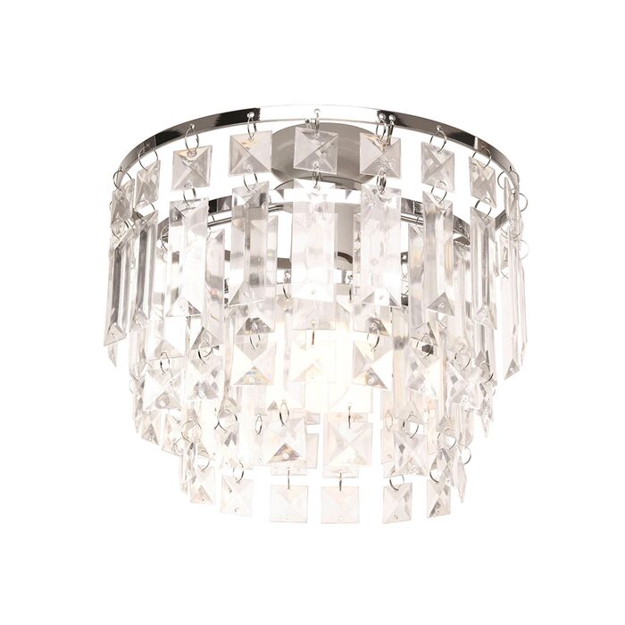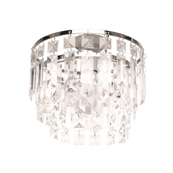 The Brilliant Tivoli Batten Fixture features a Luxe and Chandelier style with Chrome Rings and Clear Acrylic.