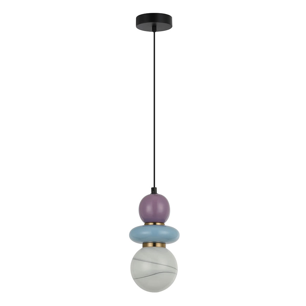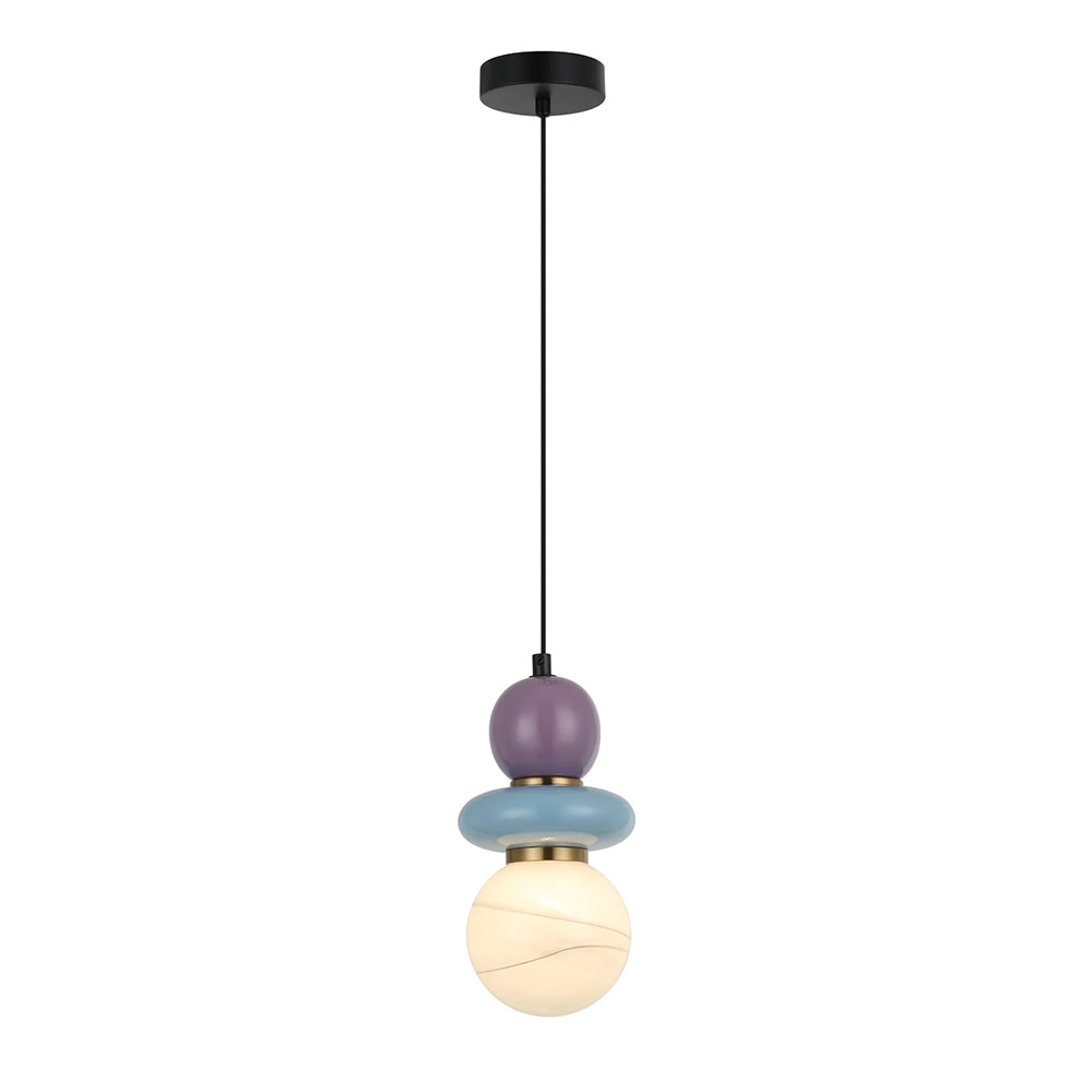 PENDANT G9 25W RND Sandblasted Opal Diffuser w/Blue & Violet Ceramic Bead Highlight Sphere OD120mm x H250mm 3m pvc cable WTY 1YR