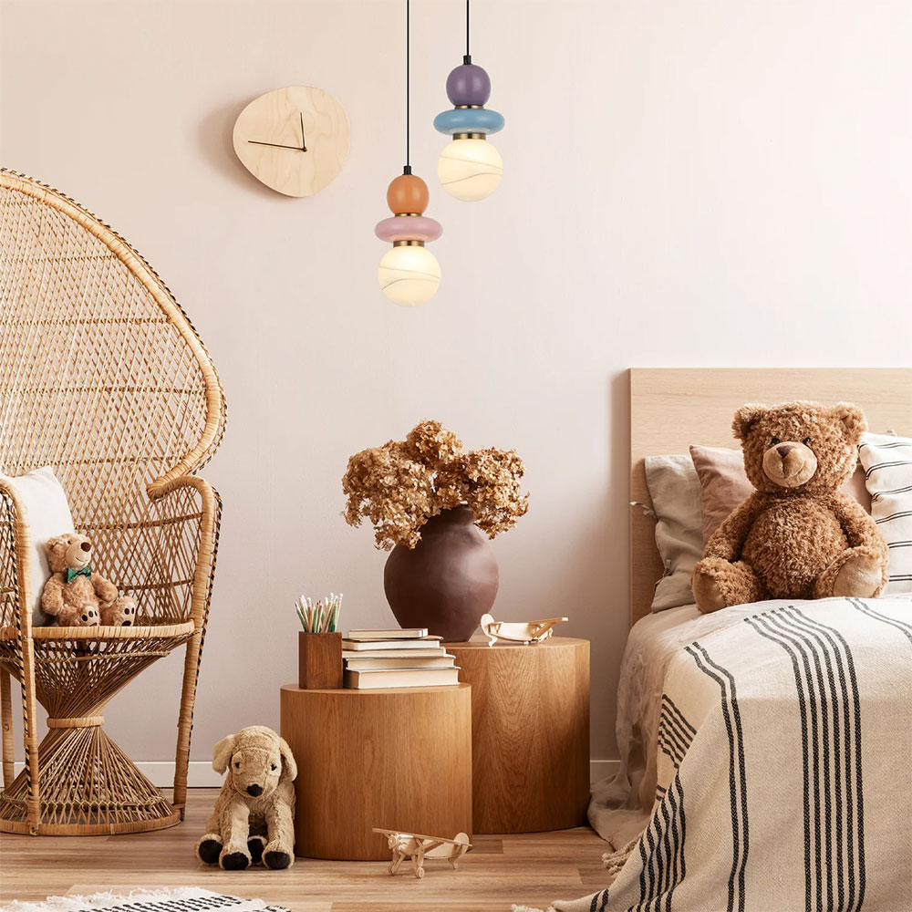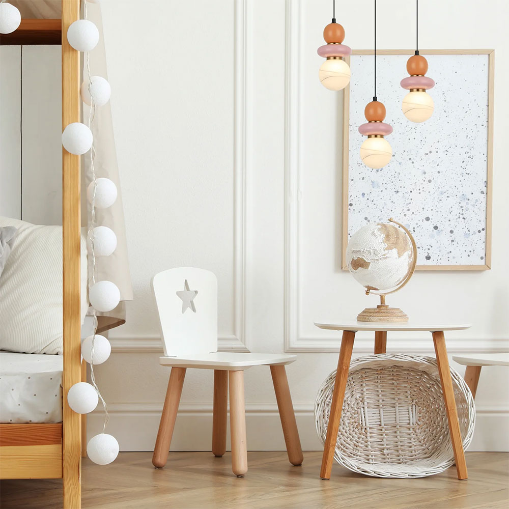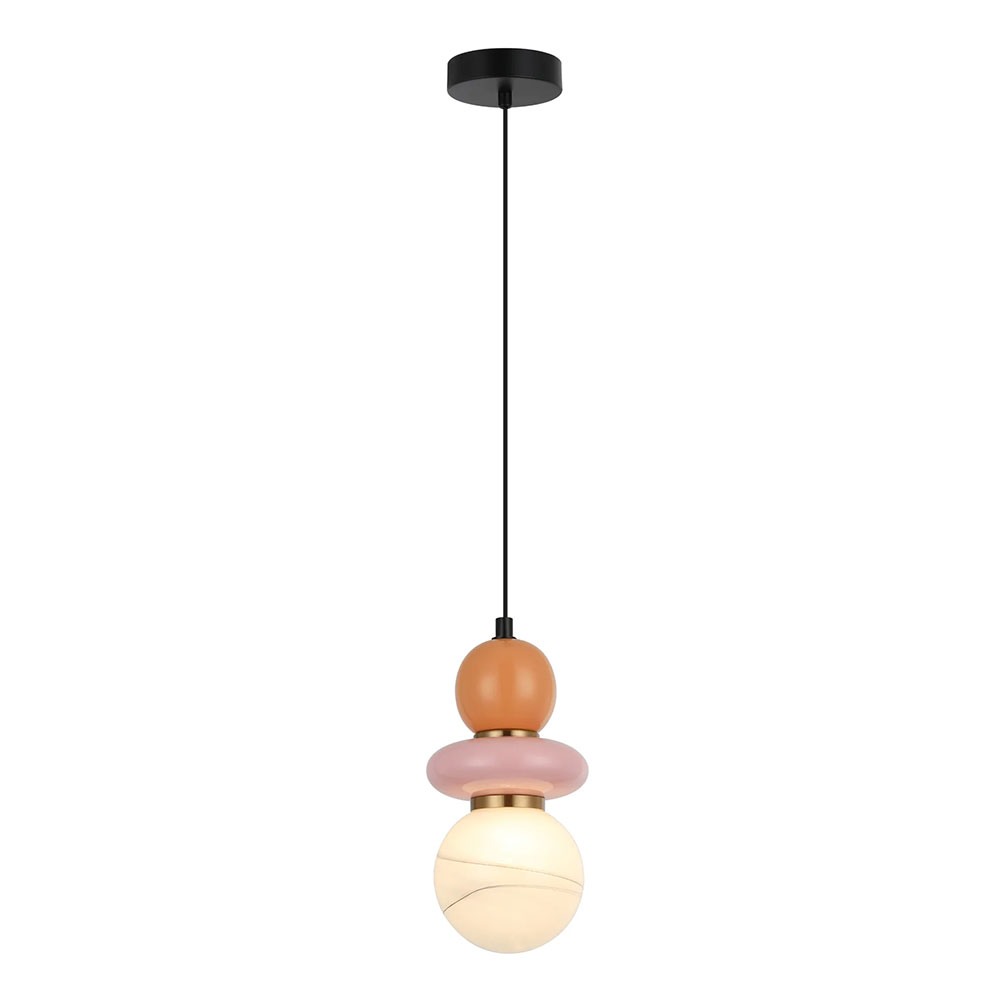 PENDANT G9 25W RND Sandblasted Opal Diffuser w/Pink & Peach Ceramic Bead Highlight Sphere OD120mm x H250mm 3m pvc cable WTY 1YR