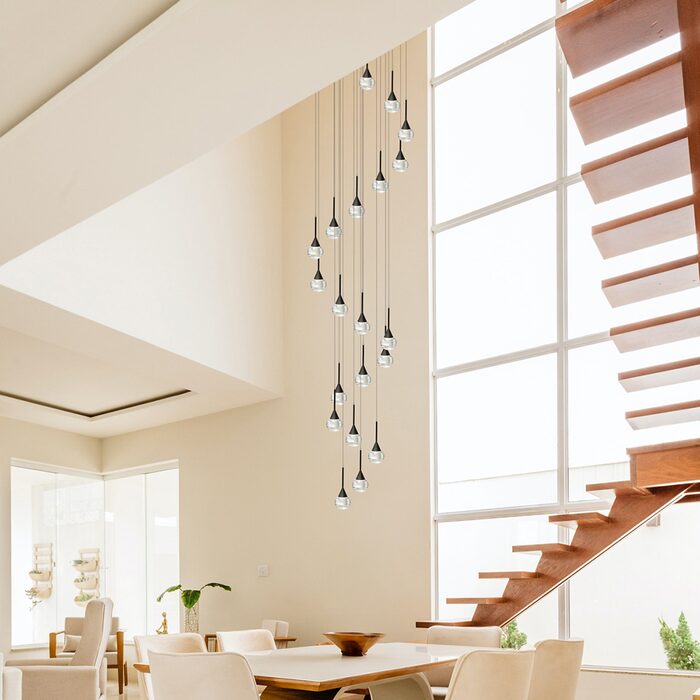 Introducing the Toffee 20lt Black Pendant from Modern Lights, a stunning blend of luxurious design and superior craftsmanship. This exquisite lighting fixture features 20 elegantly arranged lights, creating a captivating display that enhances the depth and sophistication of any space.