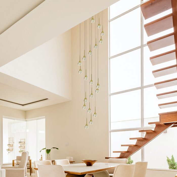 Introducing the Toffee 20lt Gold Pendant from Modern Lights, a stunning blend of luxurious design and exceptional craftsmanship. This exquisite lighting fixture features 20 elegantly arranged lights, creating a captivating display that enhances the depth and sophistication of any space.
