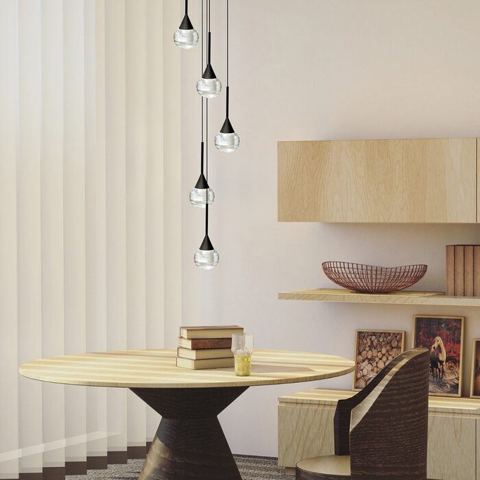 - Black Finish/Canopy with Clear & Opal Acrylic and Black Cable