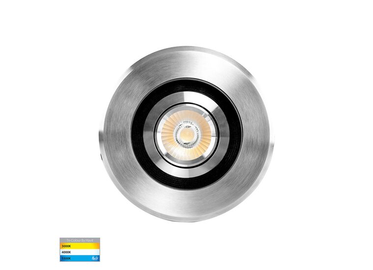 The Havit HV1828T Toldo is a 5W LED, 12V DC adjustable, round inground uplighter featuring a 316 marine-grade stainless steel cover and black aluminium body.
