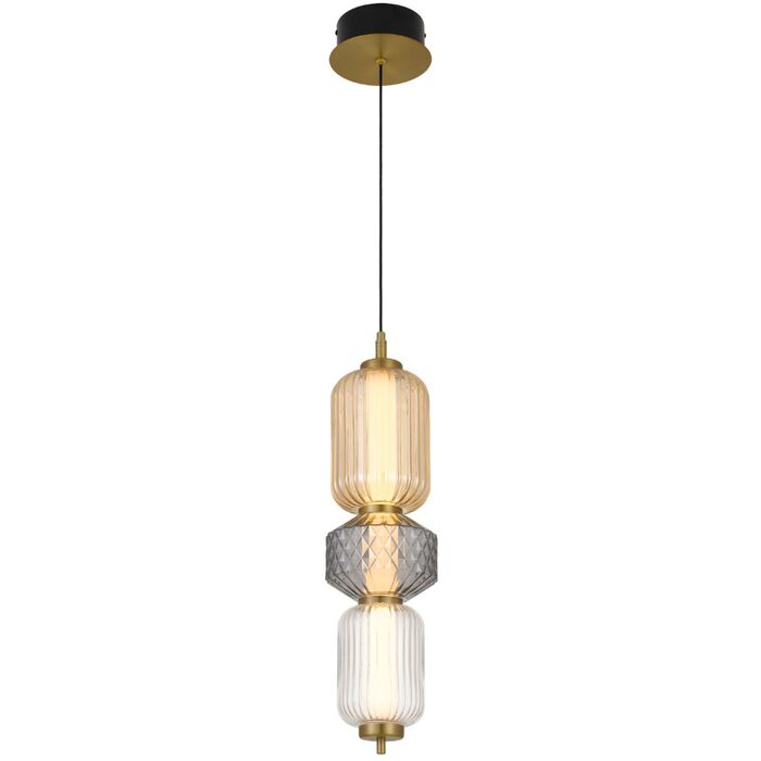 Crafted from durable iron, each piece features a striking blend of diamond-cut and rippled glass shades.