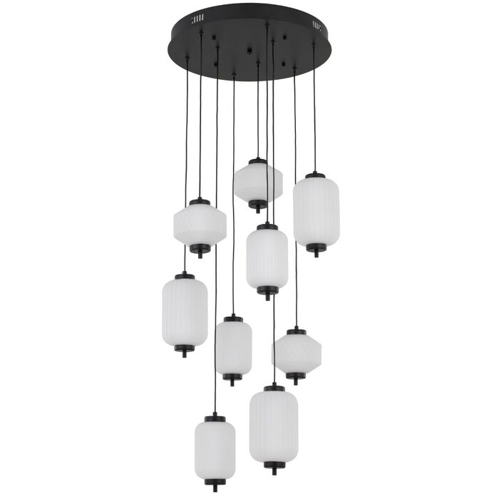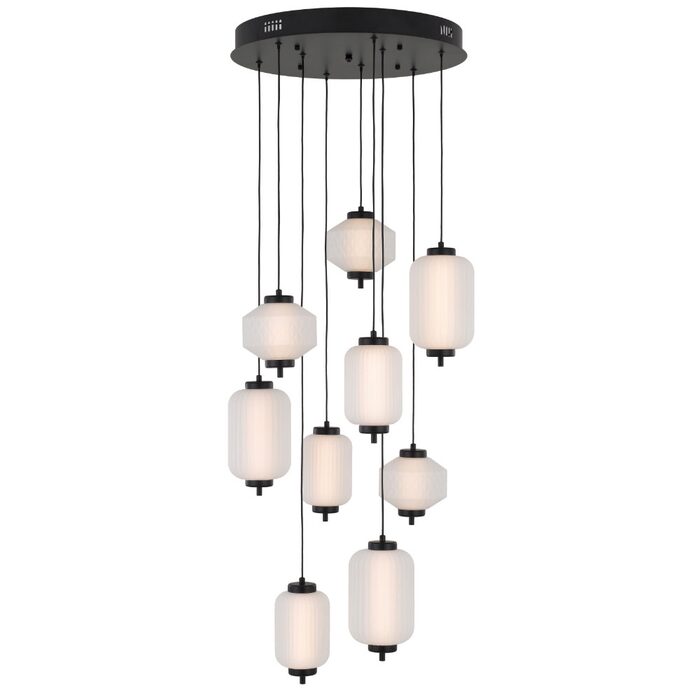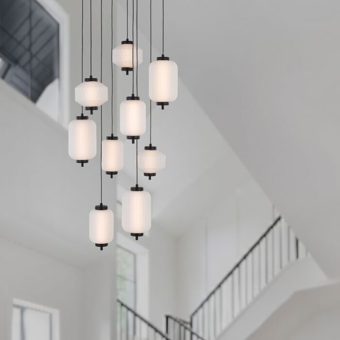 Crafted from durable iron, each piece features a striking blend of diamond-cut and rippled glass shades.