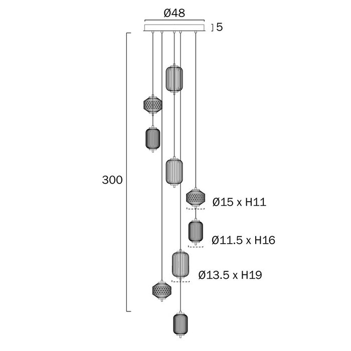 Crafted from durable iron, each piece features a striking blend of diamond-cut and rippled glass shades.