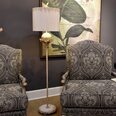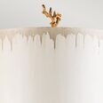 Complemented with a hand-painted parchment cylinder shade.