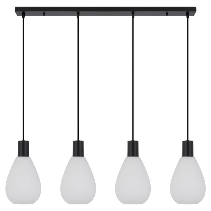 The glass is offered in opal matt, the metalware is a rich satin black, while the pendants are suspended with textile cable.