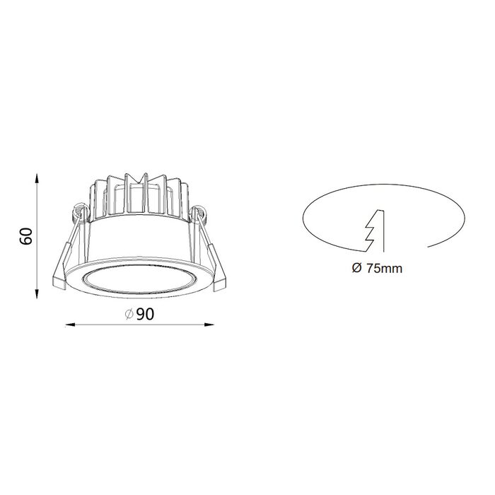 - Cutout: 75mm