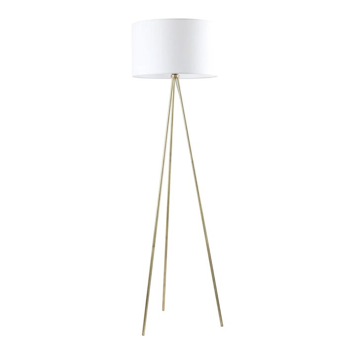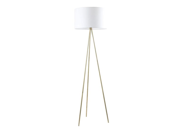 The classic tripod floor lamp in antique brass with white fabric drum shade.