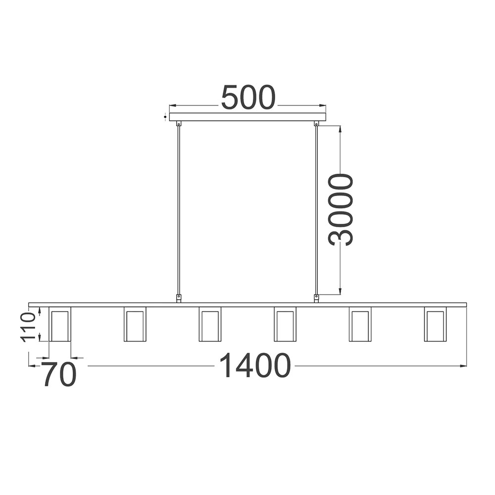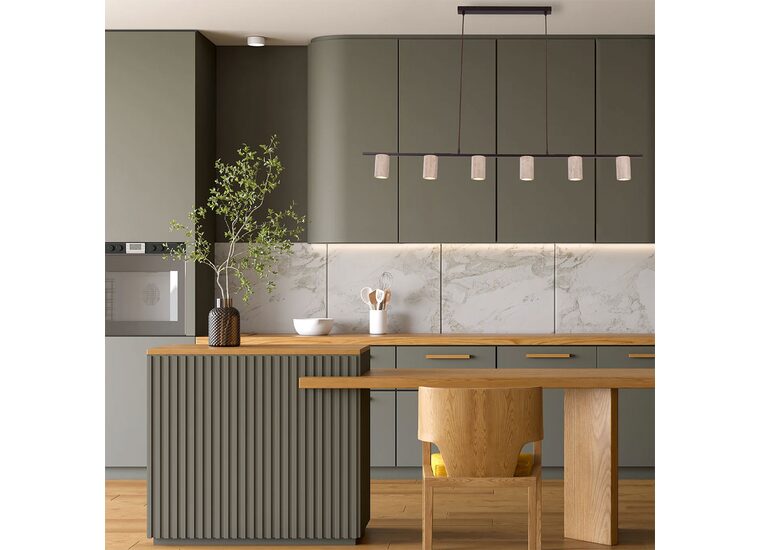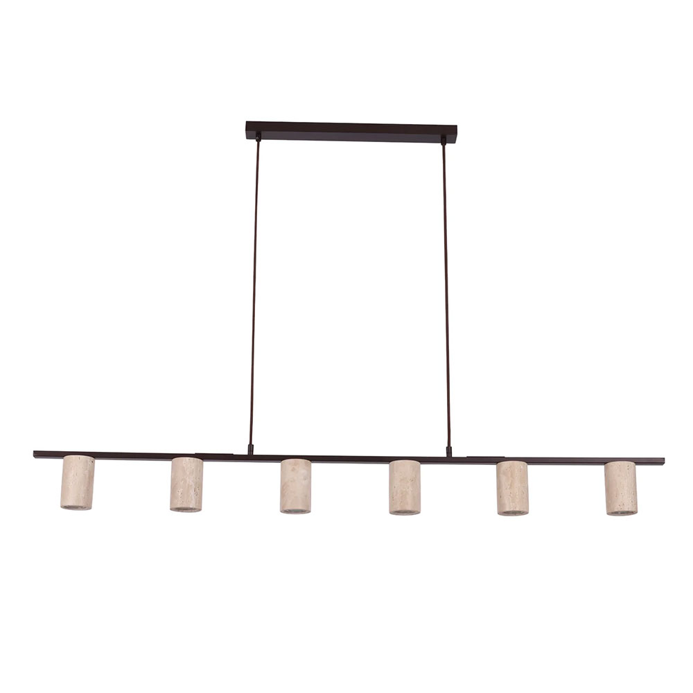 PENDANT 6 x GU10 20W Brown Iron Linear Bar w/ 6 Beige Travertine Tubular Shade L1400 x W 65 x H 120mm (SHADE OD65mm) & (3m x 2) Cable w/Rect Brown Canopy WTY 1YR