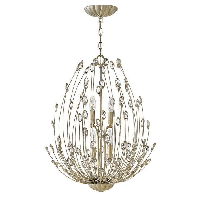 Its beauty unfolds in layers, revealing delicately scalloped canopies, a lustrous Silver Leaf finish, and dazzling faceted clear crystal embellishments adding the perfect amount of sparkle.