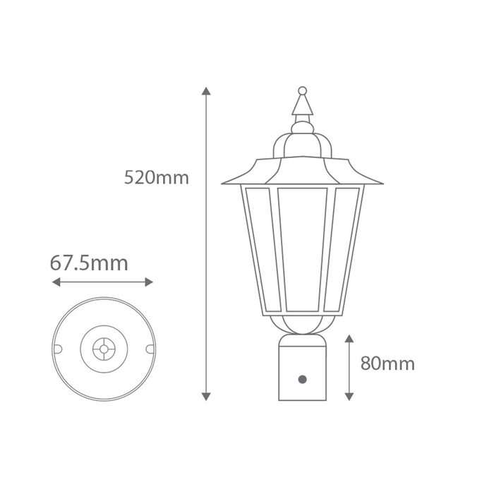 Turin Large 1 light post top complete with 60mm fitter, die-cast aluminium body and moulded acrylic lens. Made in Italy, assembled and powder coated in Australia.