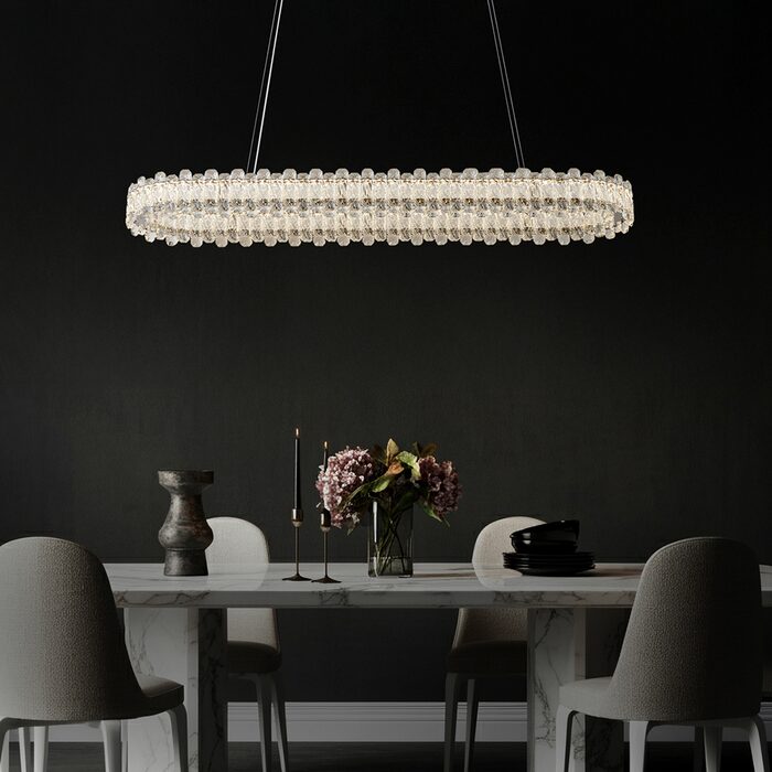 Illuminate your surroundings with the Twilight Oval Crystal Pendant and create a beautiful atmosphere that captivates guests and clients alike.