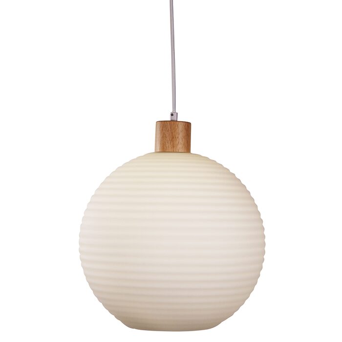 TWILLO.30 pendant combines natural timer, with a white cord and opal glass.