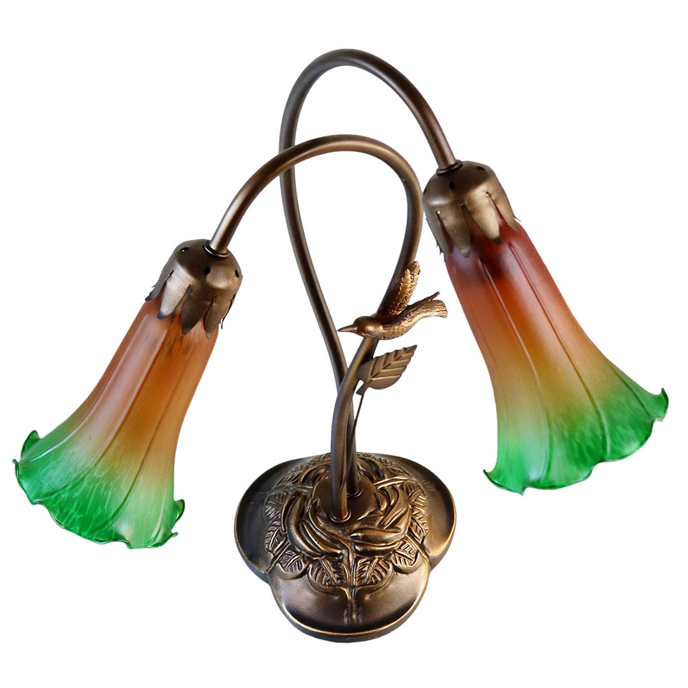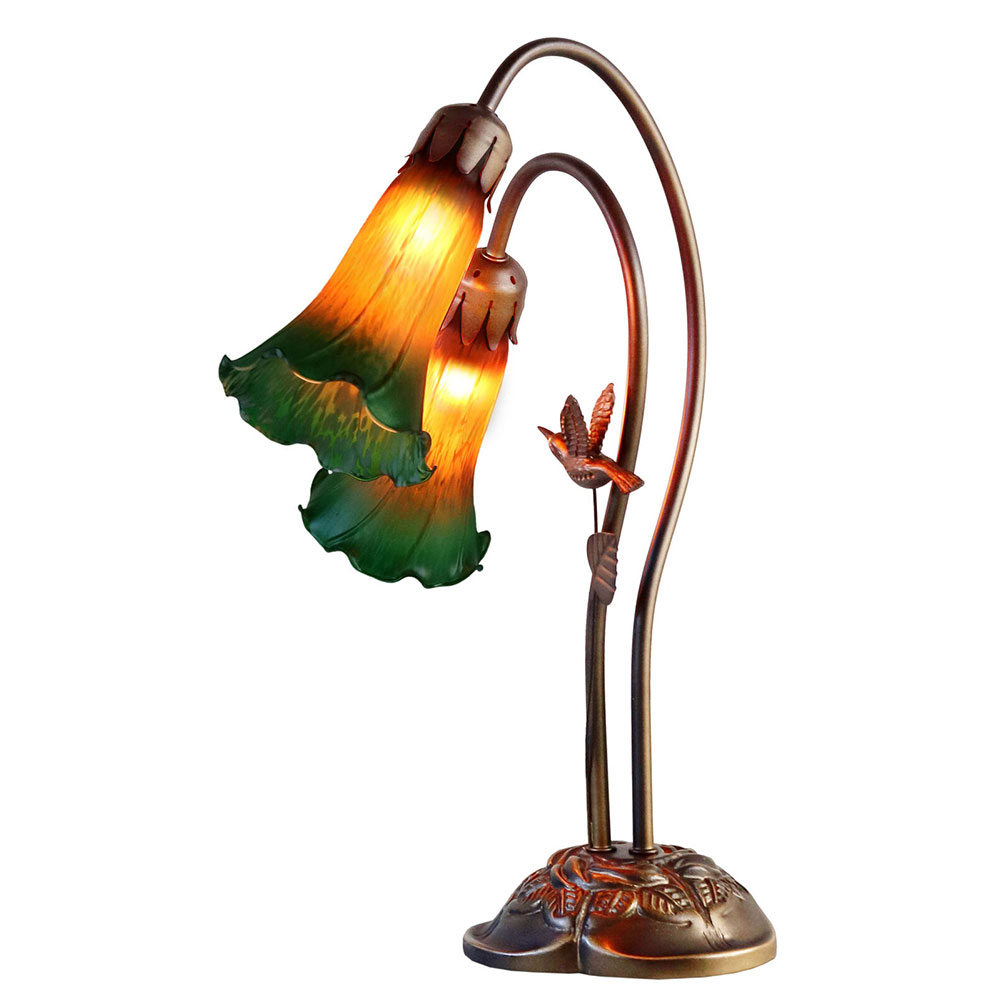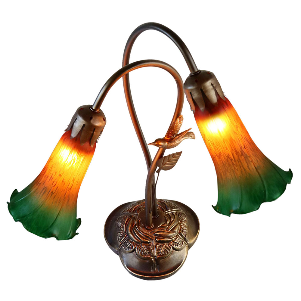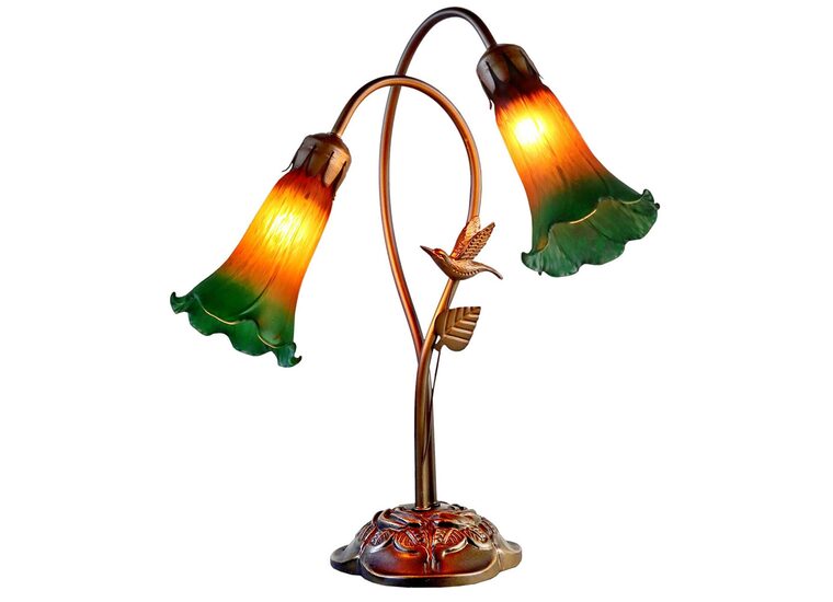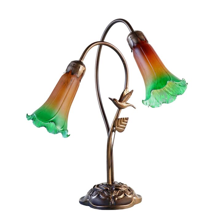 Twin Hummingbird Lily Tiffany Lamp Amber / Green - TLAH-002-AG