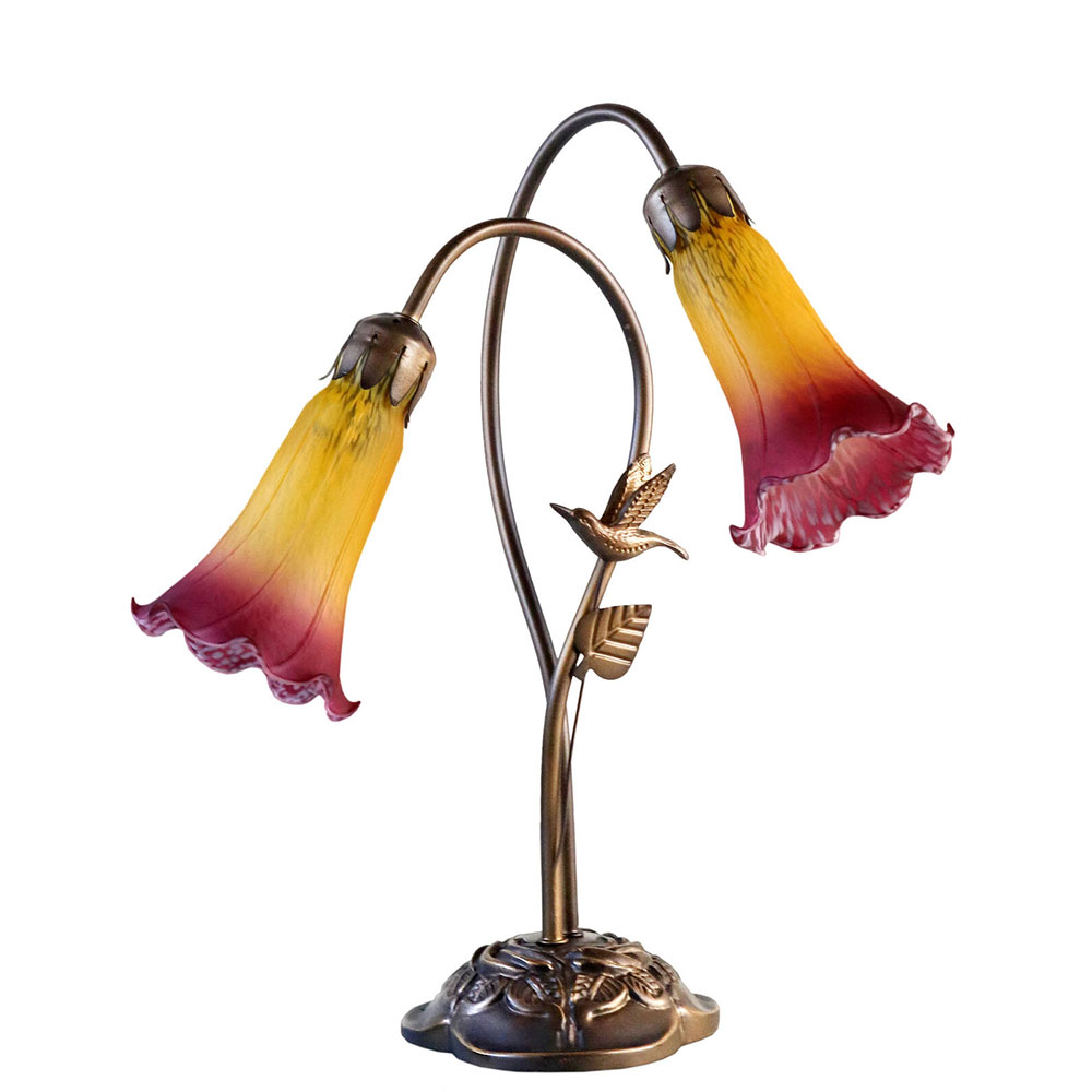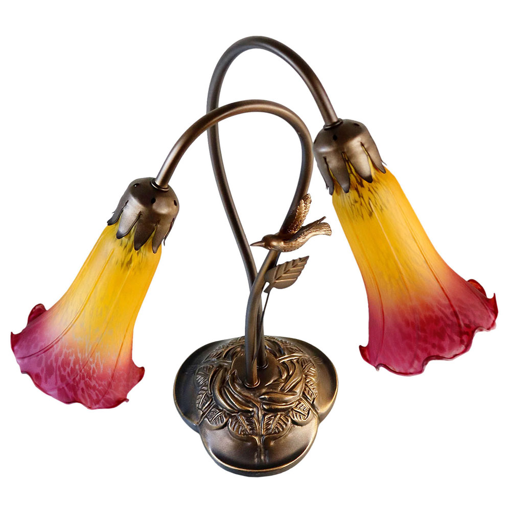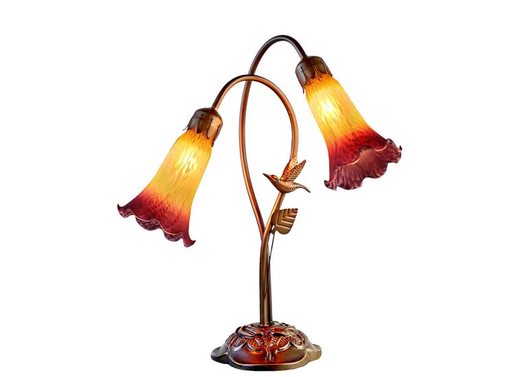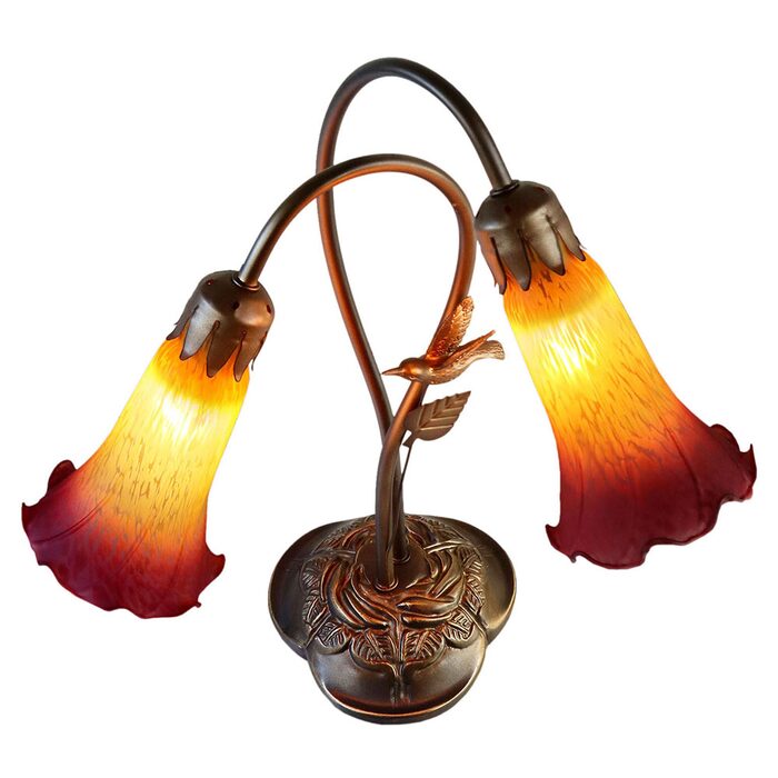 Twin Hummingbird Lily Tiffany Lamp Orange / Wine - TLAH-002-OR