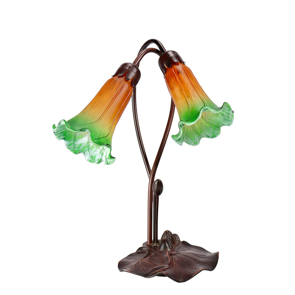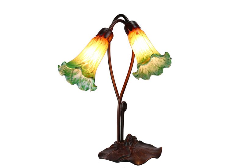 Twin Lily Tiffany Table Lamp Amber / Green - TLA1-002-AG
