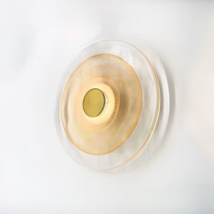 This wall light is made of aluminium, iron and glass that is designed and engineered to catch and refract light in a mesmerising way.